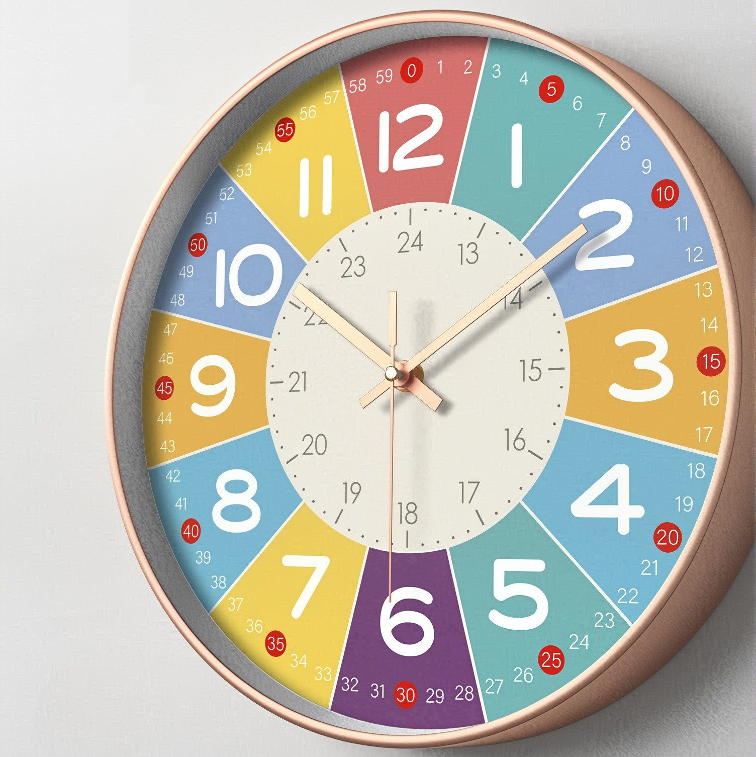 “Because every minute counts when they’re learning — a beautifully clear, whisper-quiet children's wall clock that makes telling the time feel friendly”