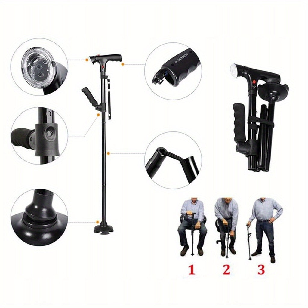 Navigate daily life with renewed confidence using this Aluminium walking stick with LED Light and Alarm. This one-piece mobility aid is designed to support independence, offering steadier steps and added security wherever you go. The integrated bright LED light illuminates your path in dim conditions, helping you spot obstacles and reduce trips. The built-in alarm provides peace of mind with quick, audible alerts if assistance is needed. With adjustable height and a folding telescopic design, you can tailor the cane to your height and easily stash it in a bag or car trunk. Constructed from durable aluminium alloy, it balances lightness with dependable support, making it an ideal companion for home, outings, and travel. A practical mobility aid that combines visibility, security and everyday reliability.