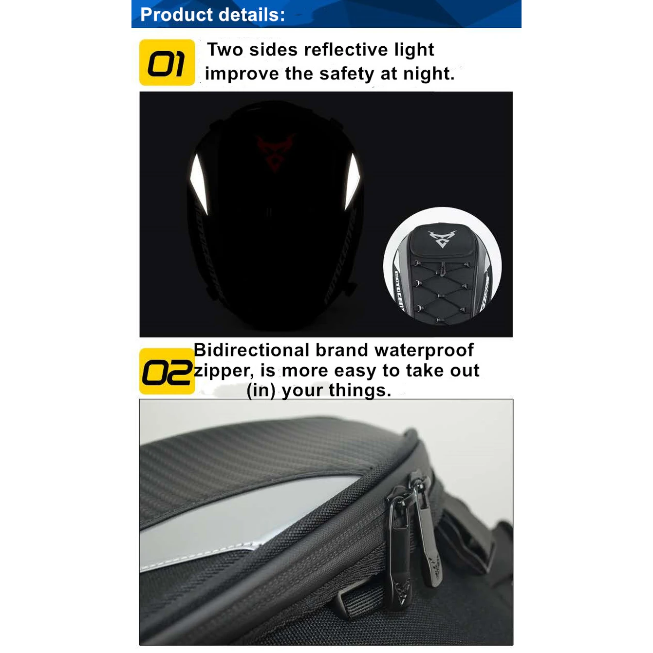 This multifunctional Waterproof Motorcycle Back Seat Bag is designed for riders seeking reliable storage solutions. With its expandable design and waterproof protection, it securely accommodates full-face helmets and other essentials, making it perfect for commuting, touring, or adventurous rides.